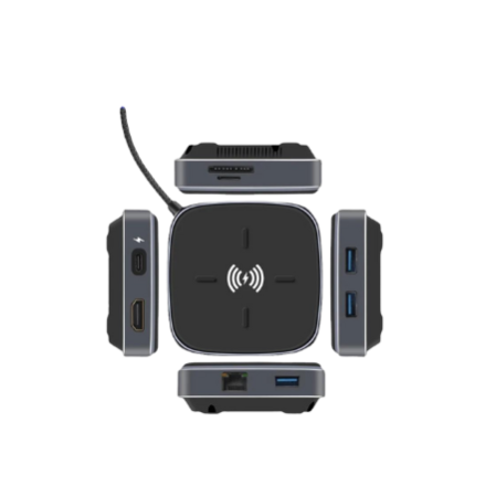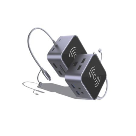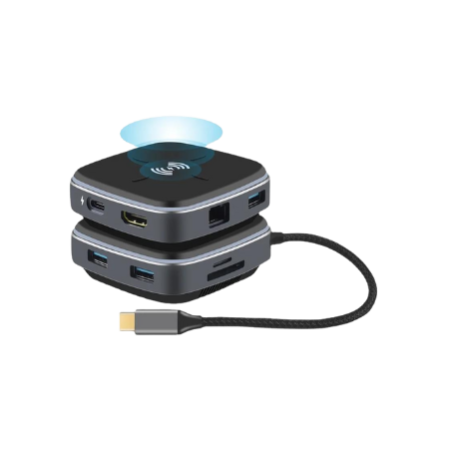 Product parameters Resolution: HDMI: 4K 1080P Network card: Support 100/1000M Ethernet Wireless charging: 5W/7.5W/10W charging power PD charging: 87WPD fast charging up to 100W Card reader: supports Micro SD/TF card reading Wire material: PVC Wire core: tinned copper wire U S B: three USB2.0+two USB3.0 interfaces Audio: 3.5mm audio interface Cord length: 15cm Material: aluminum alloy +ABS