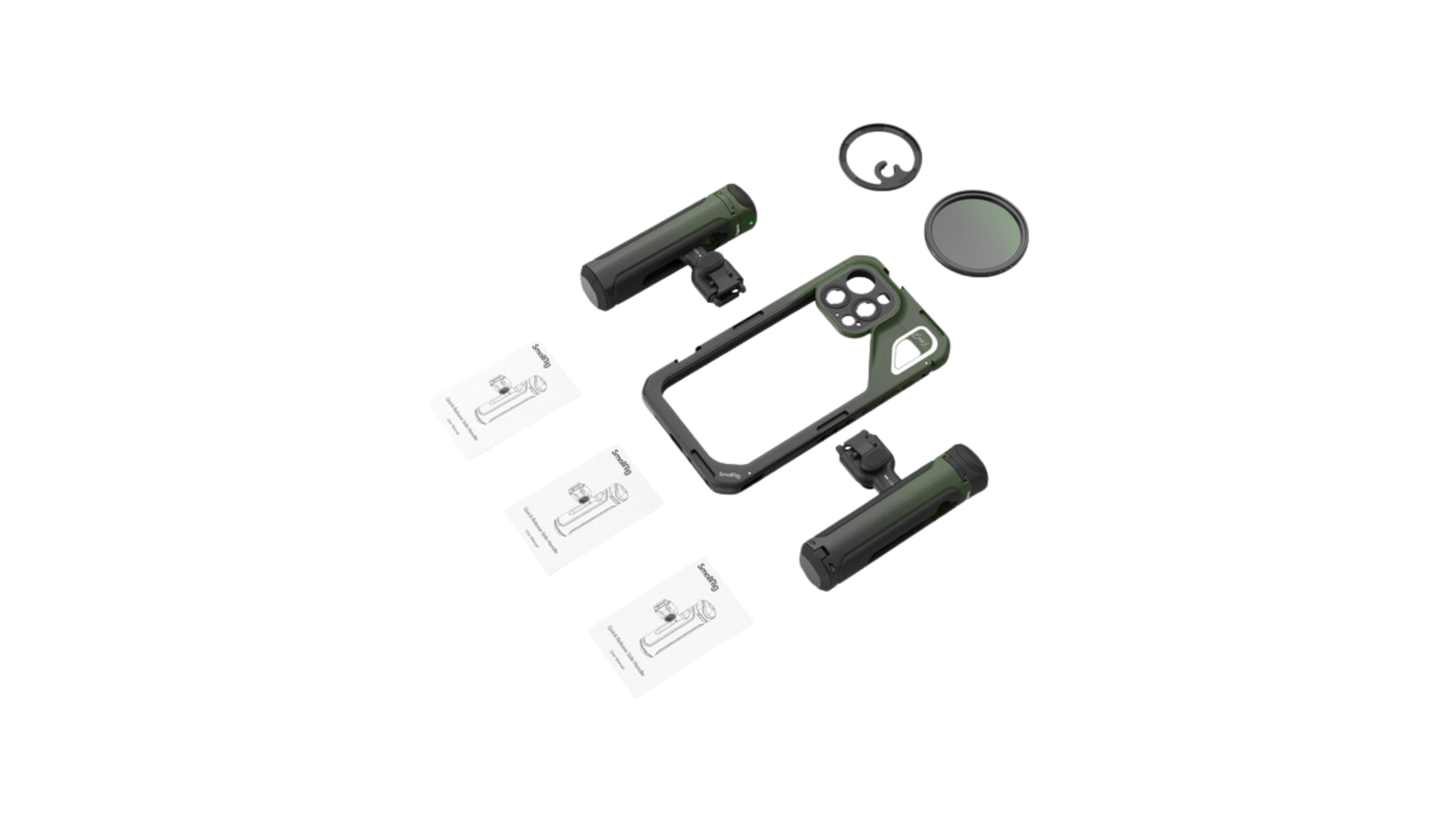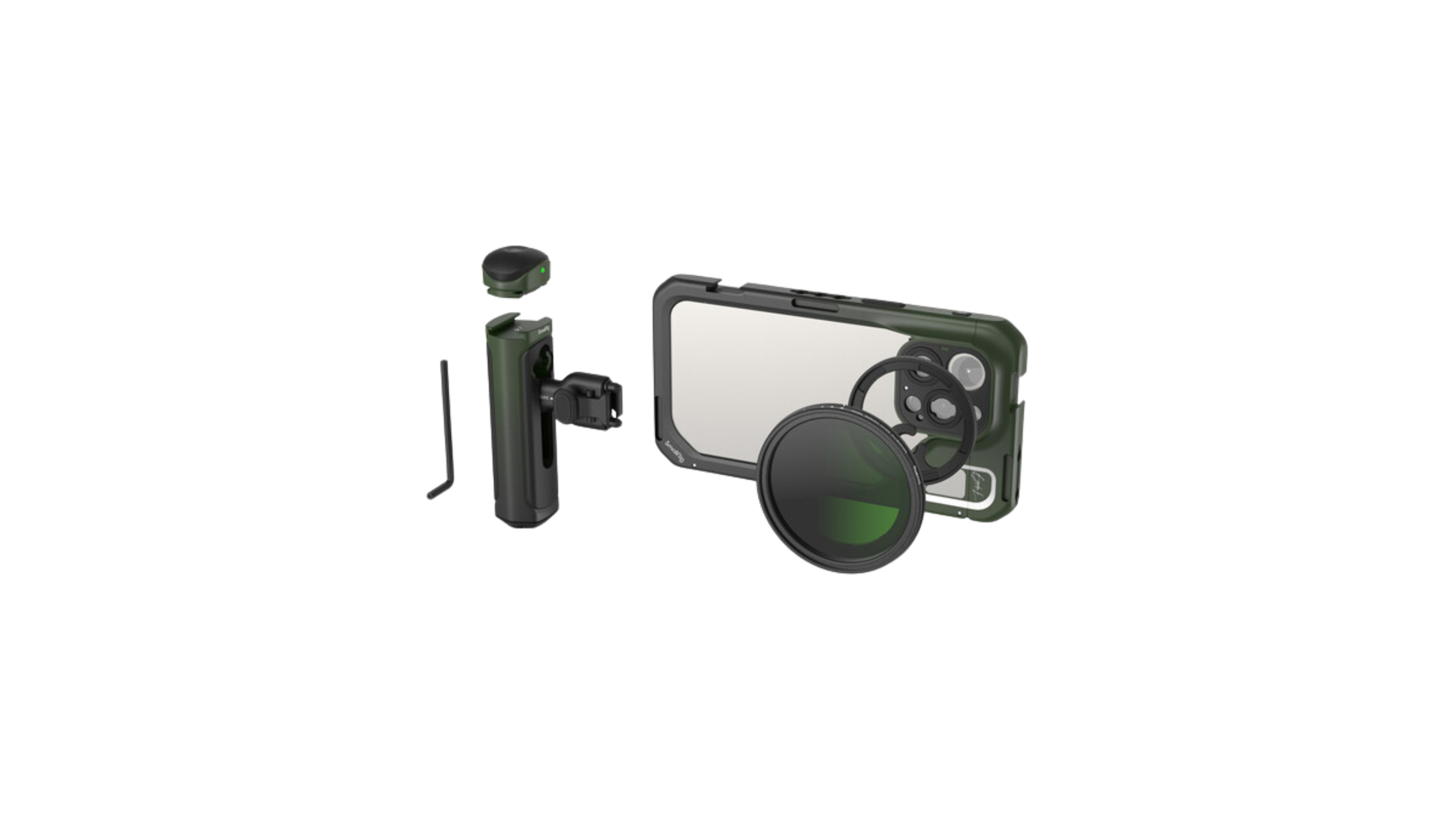 Key Features For iPhone 15 Pro Max Includes Signed Wireless Side Handle Includes Special Edition Side Handle Includes Variable ND Filter (5-Stop) Includes M-Mount Filter Ring Adapter Multiple Cold Shoe Mounts Multiple 1/4"-20 Threaded Holes Wrist Strap Hole Allows Access to All Buttons and Ports Metal Construction with Built-In Pads
